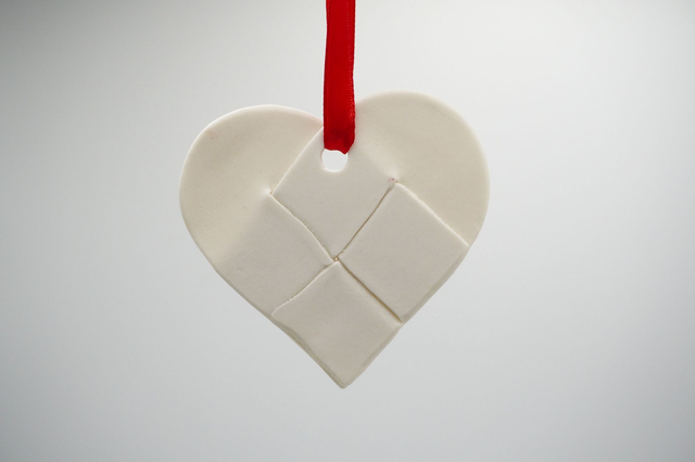 Julehjerte til ophæng i porcelæn - ens på begge sider.