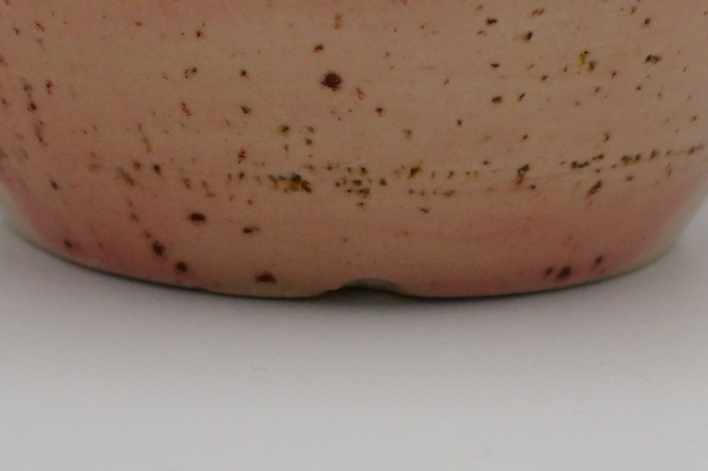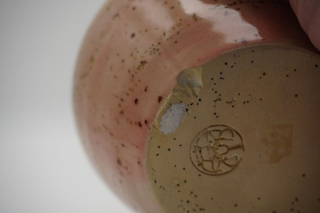Denne vase i stentøj med i en fin lyserød glasur med med pletter, er perfekt til havens små sommerblomster kan komme med inden for og pynte.
