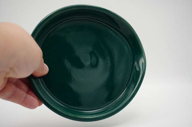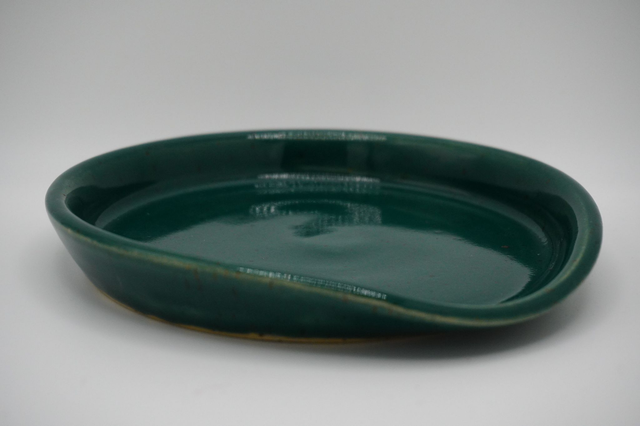 Denne spoonrest er drejet i stentøjsler med lavapletter, med en flot mørk grøn glasur.